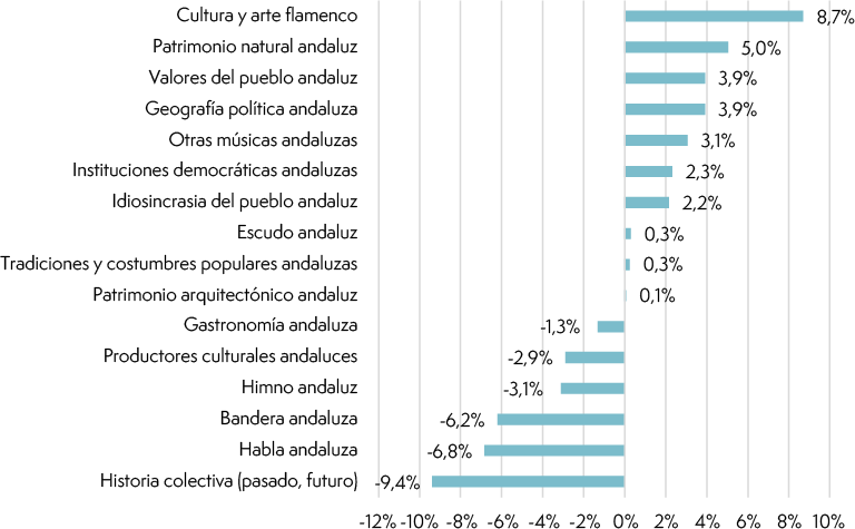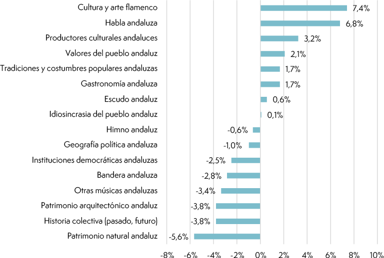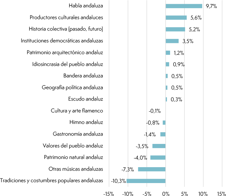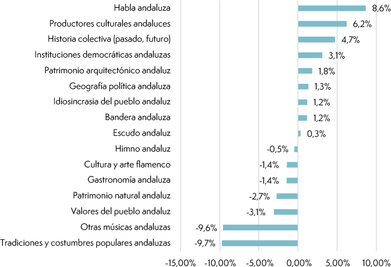 Hipótesis 3: La identidad andaluza reproducida en la escuela combina elementos étnico-culturales y cívicos, con mayor peso de los cívicos, dado el carácter dual de la identidad andaluza y su teórica función legitimadora del gobierno regional.